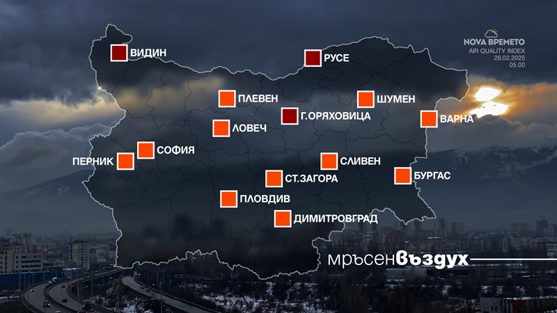 Станциите на Изпълнителната агенция по околната среда отчитат високи нива на замърсяване на въздуха в голяма част от страната. Концентрацията на фини прахови частици надвишава допустимите нива в над десет български града.